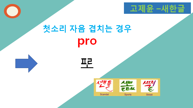 위의 글자 표기 원리를 적용하여 pro라는 발음을 표기하면 다음과 같습니다.