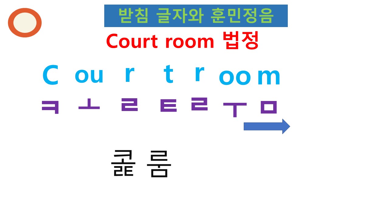 재판이 벌어지는 장소를 의미하는 영어 단어 court의 경우 '콡'처럼 현재의 한글 표기로도 받침 표기가 가능하고, 실제 이러한 발음이 현지음과도 같은 원리가 되지만, 이 역시 '코트'처럼 변경하게 된 것입니다.