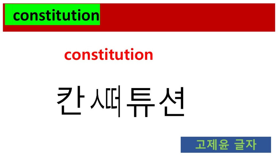 오늘은 헌법에 해당하는 영어 단어 constitution을 훈민정음을 활용한 영어 발음 표기(고제윤 글자)로 표현하고자 합니다.