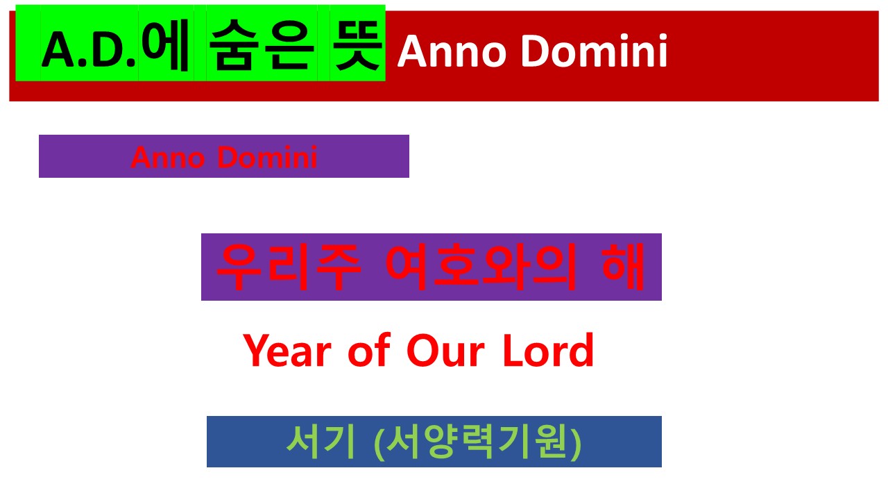알파벳으로 표현된 A.D. 와 B.C.는 그 의미를 다음과 같이 명확히 표현하고 있습니다.