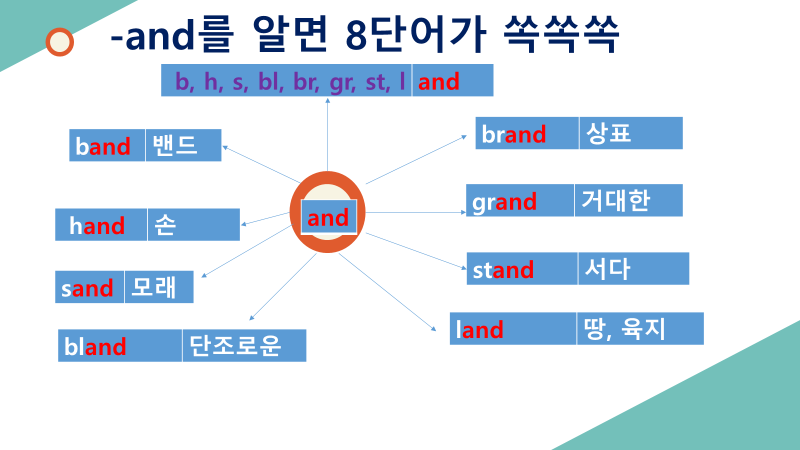 이러한 소리 호흡 중심의 이해 원리는 발음기호 없이는 원래의 소리를 이해하기 어려운 영어와 같은 경우에 유용할 수 있습니다. 예를 들어 and의 발음을 이해했다면 연관되는 발음들인 hand, land, band, brand, grand 등으로 연결지어 사전을 찾아보지 않고도 발음의 원리를 이해할 수 있게 될 것입니다.