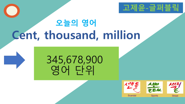 이에 비해서 영어의 숫자 단위를 우리말 방식으로 읽어보면 345million(백만), 678thousand(천), 900이 됩니다. 세 개의 백 단위 숫자를 읽고 그 후에 세 단위에 합쳐진 숫자 표현이 등장합니다.