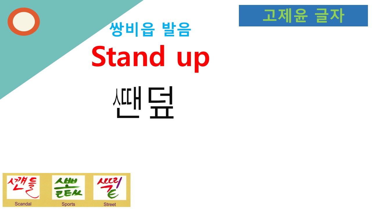위의 원리를 참고하여 '스탠드업'의 네 번의 호흡이 아닌 두 번의 호흡의 글자로 표현하면 됩니다. 이 발음을 실제 외국인들의 발음이나, 네이버, 다음, 구글 등(특히 미국식 발음)의 발음 듣기와 비교해서 연습해 보세요.