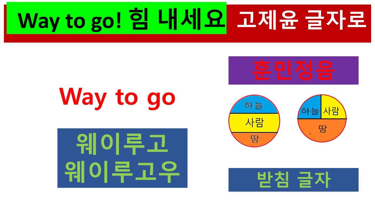 "Way to go"의 발음을 듣다 보면 개인적으로는 "힘 내세요"가 아닌 우리말 "웨이러고(왜 이러고) 사냐?"처럼 들리기도 합니다. 한 가지 일을 가지고 30여 년 가까이 메달려온 제 삶을 이야기하는 것 같은 갑작스런 자의식이 발동하기도 합니다. 1995년 10월 9일 "한글영어"를 출판하며 언론 인터뷰를 통해 알리며 시작한 이 일이 어느덧 30여 년이 흘렀네요. 수익 창출이 되는 것도 아니고, 그렇다고 폭발적인 호응을 받은 것도 아닌데 "참 어지간히도 오랫동안 이 길을 달려왔구나!" 하는 제 자신의 객관화 상황을 만들어 내기도 합니다. 그럼에도 불구하고 "가야 할 길"인 줄 알았고, 그 길을 여는 것에 여전히 확신이 있기에 오늘도 그 길을 헤쳐나가 봅니다.
