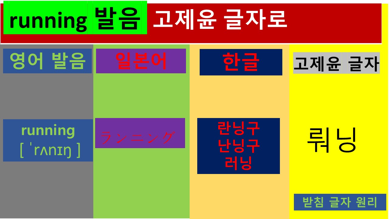 오늘은 running에 대한 영어 발음과 일본어 한국어 발음에서 보이는 각각의 특성을 살펴보고자 합니다.