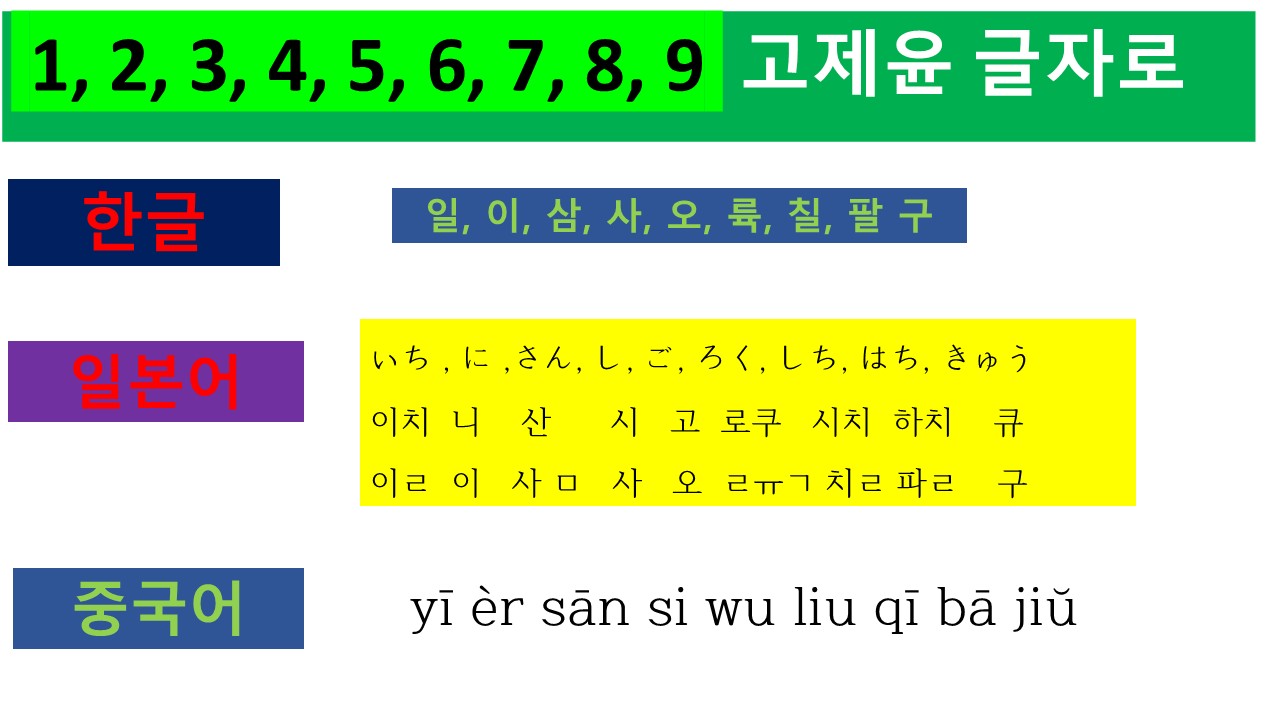 4) 한국어와 일본어 비슷한 발음 : 3, 4, 9