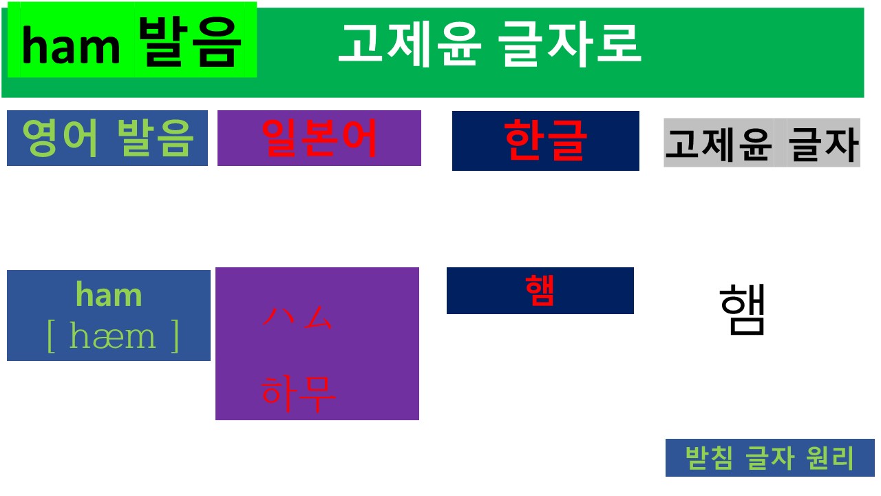오늘날에도 일본어에서는 한국인들에게는 받침으로 이해하는 소리를 새로운 '자음+모음'으로 변화하여 받아들이고 있습니다. Ham이라는 영어 단어를 '햄'이라는 발음 대신에 '하무'로 발음하는 일본어는 위에서 제시한 '곰'과 '구(쿠)마'와 동일한 언어적 원리를 적용하고 있음을 볼 수 있습니다.