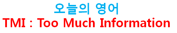 TMI에서 Too much 많은 결합하는 의미가 되면 '지나치게 많은, 과도한' 등의 의미로 이해할 수 있습니다. 약간의 부정적인 의미를 내포한다고 할 수 있을 것입니다. 정보 처리 용량을 너머서고 굳이 몰라도 될 내용까지 시시콜콜하게 전달되는 경우에 사용할 수 있을 것입니다.