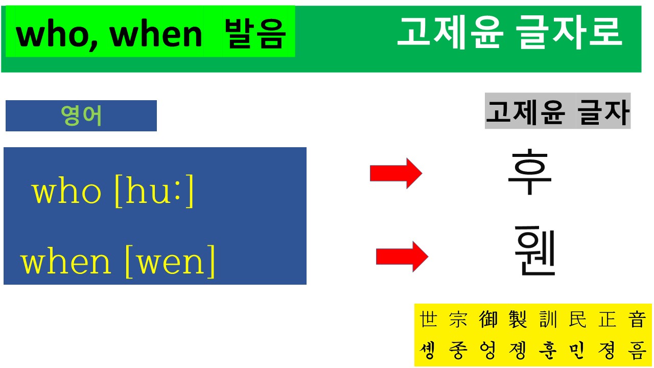 오늘은 5W1H에서 who와 when발음 비교를 통해서 훈민정음의 뛰어난 글자 표기의 원리를 살펴보았씁니다.