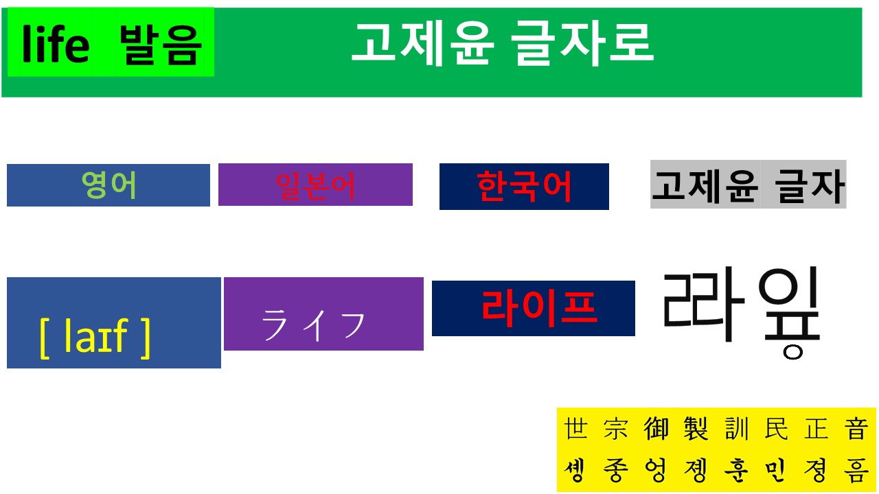 * 훈민정음 창제 원리를 담아서 영어를 비롯한 모든 외국어 표기를 제시한 "고제윤 글자" 표기의 원리는 아래의 동영상에서도 보실 수 있습니다.