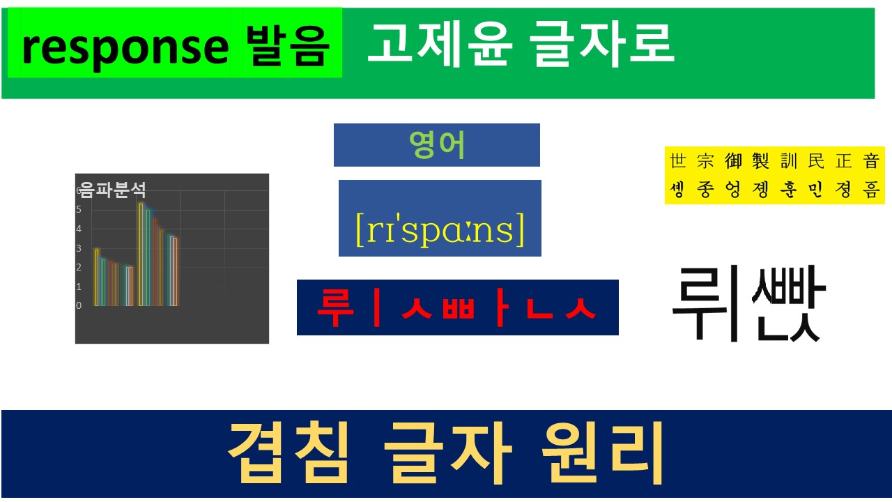 알파벳과 발음 기호는 가로 쓰기로 음소를 배열합니다. 발음 기호로 표현한 [rɪˈspɑːns]를 음소로 가로 쓰기 배열을 하면 [루 ㅣ ㅅ ㅃ ㅏ ㄴ ㅅ]입니다. 각각의 소리 원리는 다음과 같습니다.
