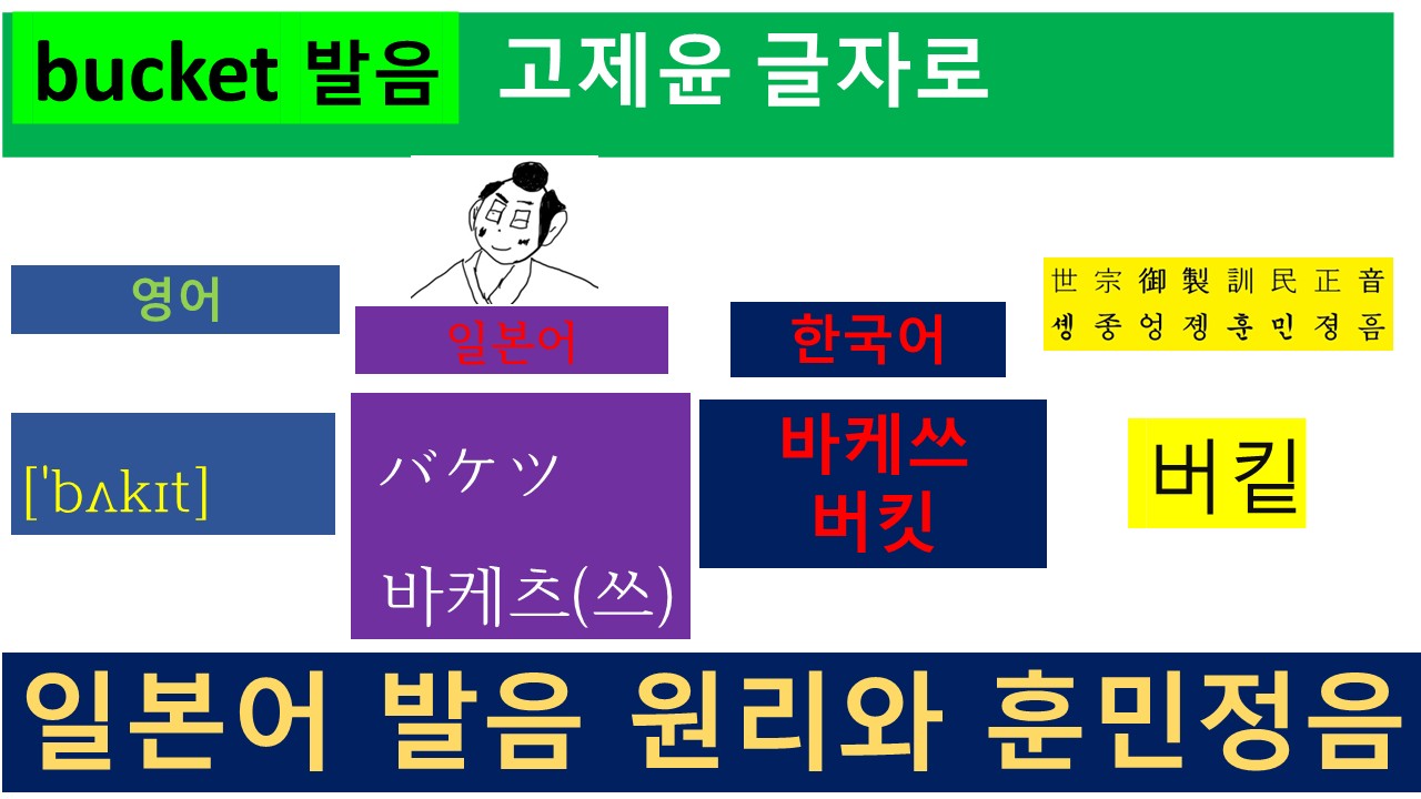 위에서 제시한 일본어 표기 원리를 제거하면 훈민정음의 원래 표기가 보입니다. 위의 표에서 제시한 훈민정음을 활용한 "고제윤 글자"가 바로 그것입니다. 우리는 충분히 훈민정음의 원리로 '버킽'이라고 표기하고 발음할 수 있습니다. 이 발음을 억지로 일본어의 방식에 꿰 맞출 필요도 없을 것입니다.