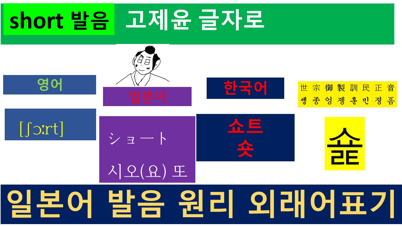 훈민정음의 글자 원리로 '숉'로 표기하면 하나의 음절입니다. 즉 하나의 글자이며, 한 번의 호흡으로 소리를 표현합니다. 그런데 일본어 방식의 소리 표기 원리를 적용하면 '쇼트'가 됩니다. 두 번의 호흡이며, 두 개의 글자입니다.