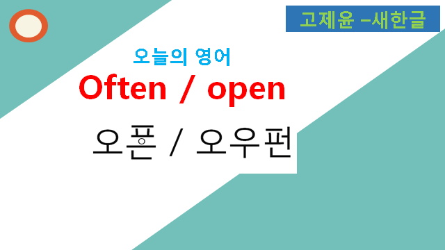 한국어 발음에서 '오픈'은 영어 단어로는 두 개의 단어에 해당합니다. Often, open의 발음이 둘 다 '오픈'으로 발음되는 것을 볼 수 있습니다. 영어의 f와 p를 둘 다 '피읖'으로 받아들이면서 생긴 현상입니다. 이 둘의 발음이 구별되지 않는 이유는 한국어 발음에서 f에 해당하는 소리나, 글자가 없기 때문에 구별되는 소리로 인식하기 어렵기 때문입니다. 먼저 이 두 단어의 각각의 쓰임을 살펴보면 다음과 같습니다.