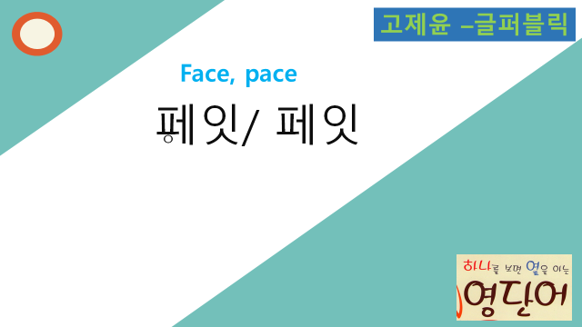 이들 단어들 중에서 오늘은 face-pace발음의 구별 원리에 대해서 살펴보고자 합니다. 위의 글자 표기는 1995년 이래로 "고제윤 글자(새 한글)"에서 개발한 영어 발음 표기의 원리를 바탕으로 하여 나타낸 글자입니다. 위의 글자에서 볼 수 있듯이 영어의 f와 p를 구별하는 방법으로 영어의 f소리에는 피읖 아래에 작은 동그라미를 그려 넣은 표기를 사용하여 나타냈습니다. 영어의 f소리는 우리말에 없기 때문에 이를 구별하기 위한 것입니다.