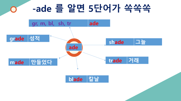 아래의 단어 암기 원리는 1995년 이래로 "고제윤 글자(새 한글)"에서 개발한 방식으로 훈민정음의 발음 표기를 활용하여 연관 단어를 이해하고 암기하는 방법입니다. 이번 블로그에서는 'ade에서 ain'까지의 발음을 가진 단어들을 정리하였습니다.