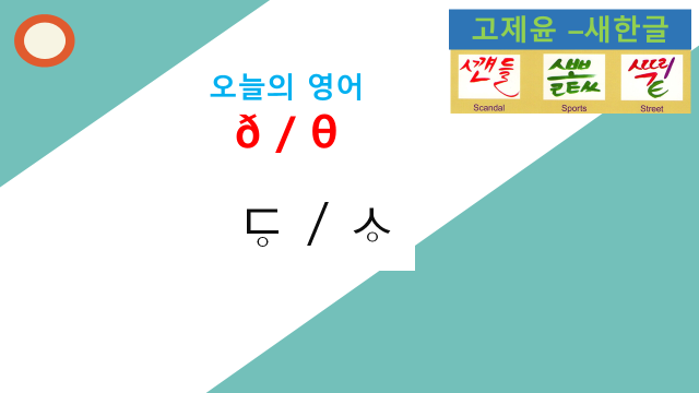 영어의 발음에서 또 다른 th 발음은 this, mother, father등에서 볼 수 있는 발음입니다. 이 발음에 해당하는 th발음은 디귿 아래에 작은 동그라미를 그려 넣은 표기를 사용하여 나타냈습니다. This, mother 등의 th발음은 thank, 나 therapy의 th와 다르게 유성음의 특성을 갖습니다. 이 둘의 소리가 구별되는 원리는 울림소리인가 아닌가 하는 차이입니다.